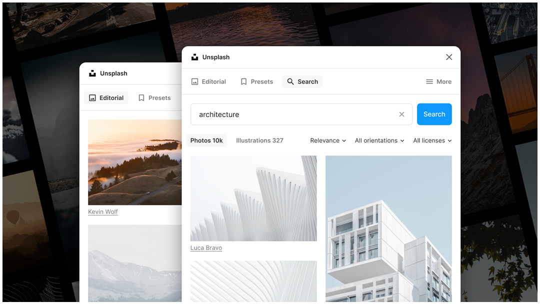 Unsplash lets you quickly insert high-quality free photos right inside Figma.