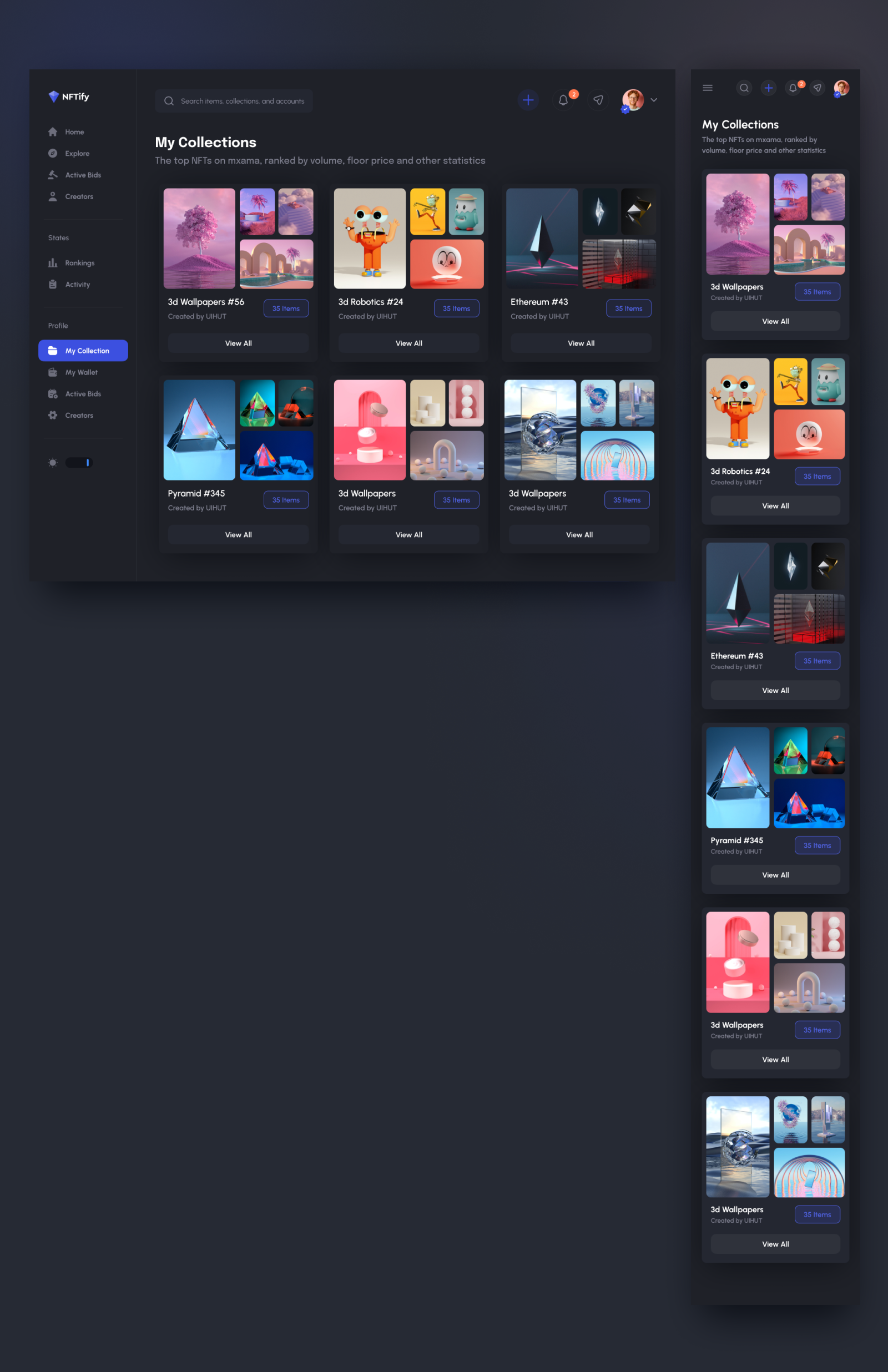 We usually respond within 24 hoursMy Collections NFT Marketplace Dark UI